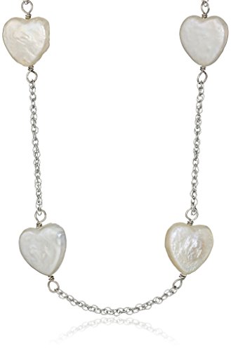 Bella Pearl Tin Cup Sterling Silver and Chinese Freshwater Cultured Pearl Heart Necklace