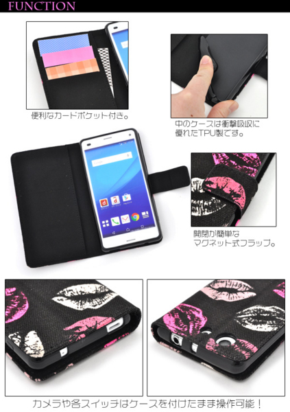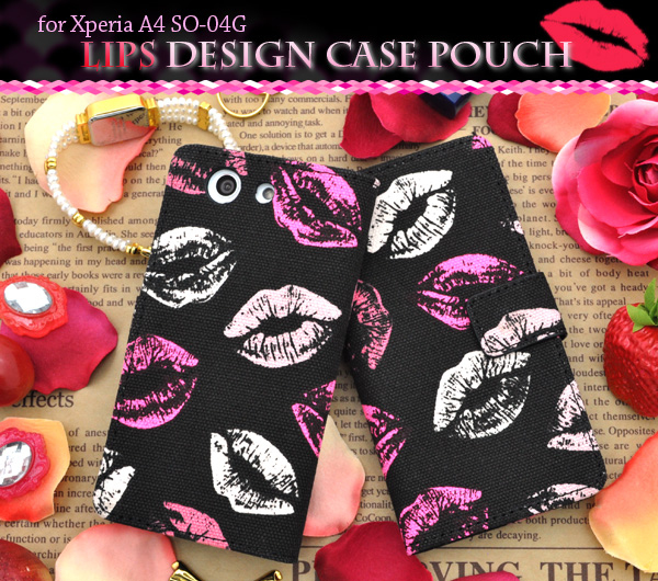 黒地に大胆にあしらわれたリップがおしゃれなケースです。