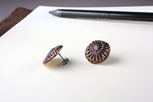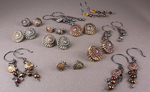 -. Title : 11/16" Ammonite Fossil Earrings, Sterling with Iridescent Patina