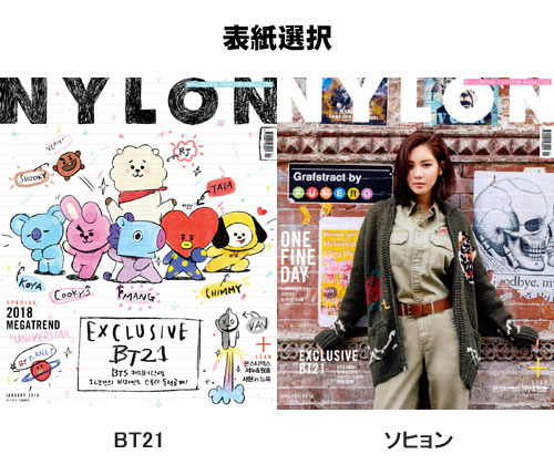 韓国女性雑誌 NYLON(ナイロン) 2018年 1月号 (防弾少年団のキャラクターBT21&ソヒョン表紙選択/MONSTA Xのショヌ&ウォノ記事)