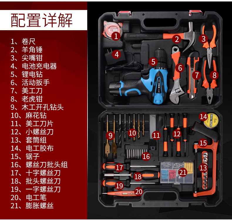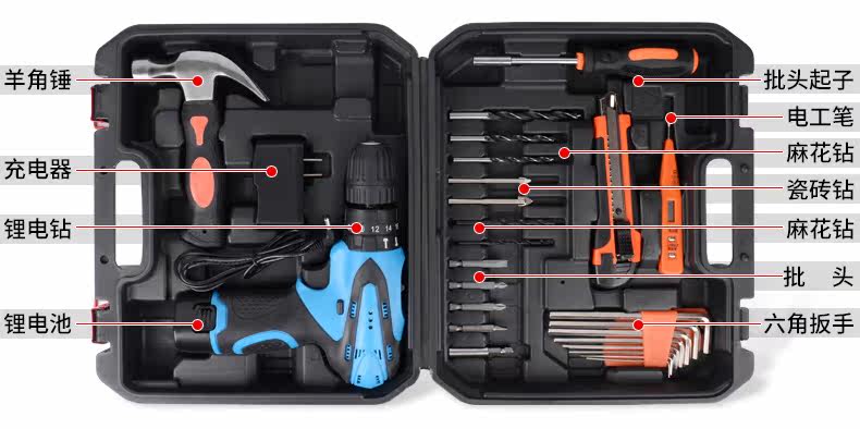 五金工具套装充电电钻充电式木工工具箱电工维修组合套装锂电钻