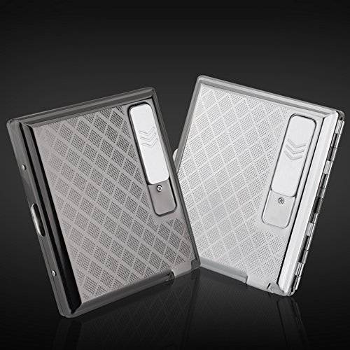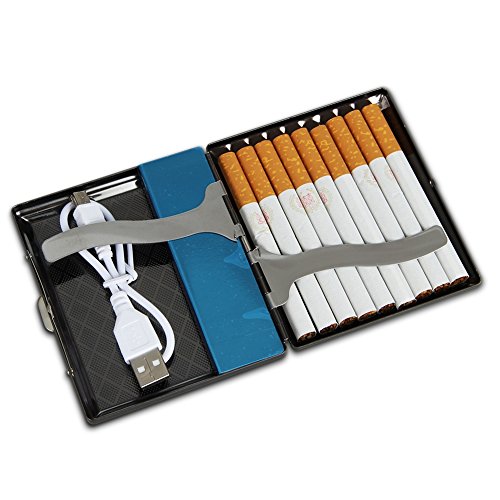 Feature : USB electric lighter, powered by a USB rechargeable battery. No gas or fuel is required. Environmental friendly. / Slide it down and the heating wire will light immediately / It is made by Aluminum,very light, and can contain 15 cigarettes in full,there are two spring clip inside, can firmly clamped cigarettes / Can lit up 4 packages of cigarette when full-charged, the built in battery can be charged and discharged 200-300 time / Usually 1.5-2 hours, Blue led light on when charging, will auto turn off once finish charge. please do not still connect with power supply, otherwise it will damage the life time of battery.