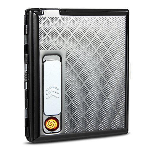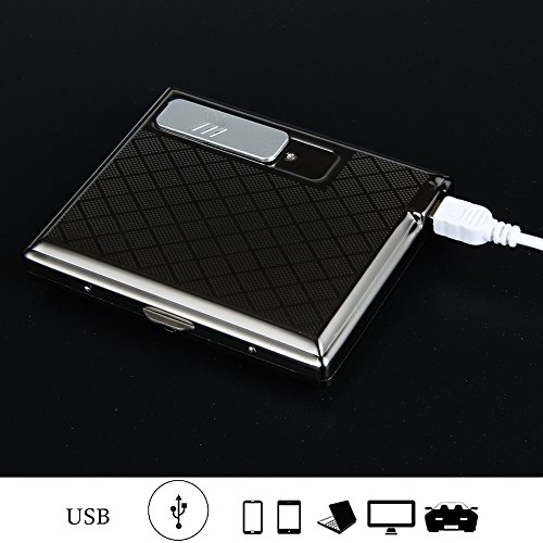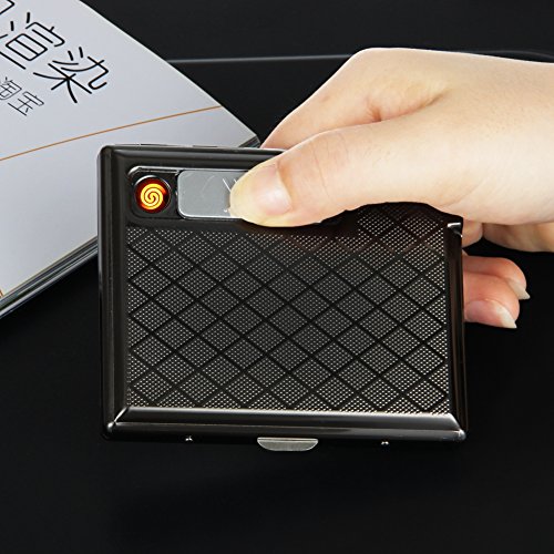 Title : Padgene USB Rechargeable Lighter Box Holder Cigarette Lighter Case Holder Box with LED Lighting Windproof Electric Built-in Flameless Lighter (Black)