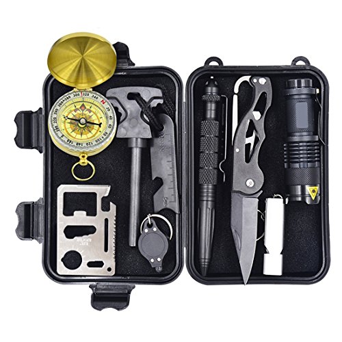 ✔FEEL SAFE BY KEEPING 10 EMERGENCY ESSENTIALS IN ONE SURVIVAL KIT : OMNi survival gear set including camping survival compass , fire starter, whistle, survival knife, flashlight, tactical pen, multi-function saber card and portable mini light etc. Perfect for Car, Camp, EDC, Hunting, Hiking, Boating, Fishing Prepping or any outdoor emergency survival.