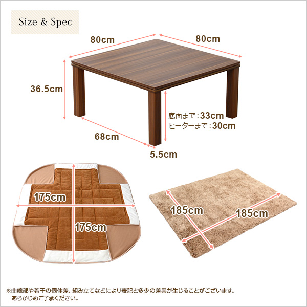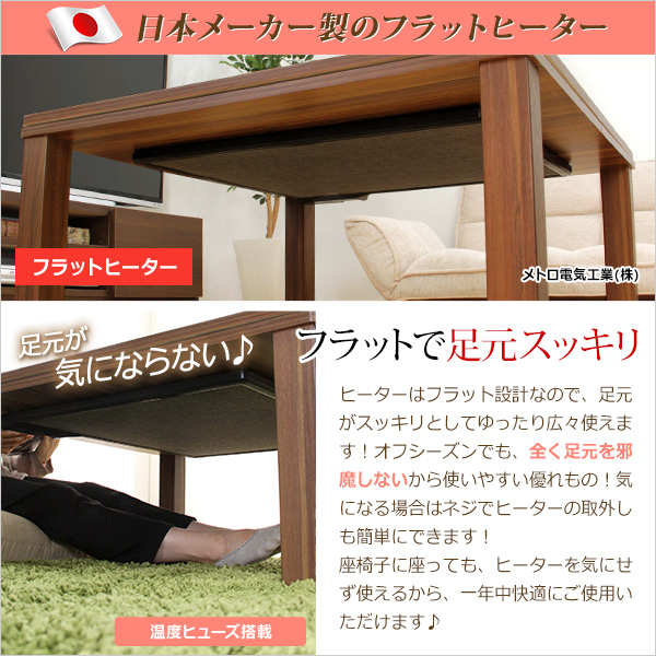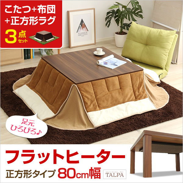 フラットヒーターこたつ【-Talpa-タルパ(正方形・80cm幅)】(こたつテーブル+掛布団+角ラグの3点セット)