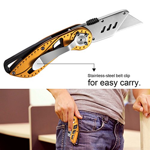 - POCKET-SIZED: The box cutter is in sleek, mini and lightweight aluminum design, also comes with stainless steel belt clip for easy carry. The folding utility knife is a practical gadget for outdoor, traveling or daily use.