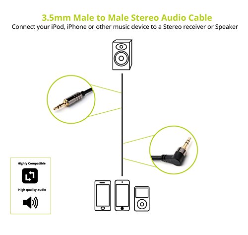 BlueRigger 3.5mm Right Angled Male to Flat Male Stereo Audio Cable - 6 Feet (Black) – Supports iPhone, iPod, Android and other Smartphones