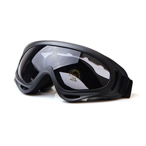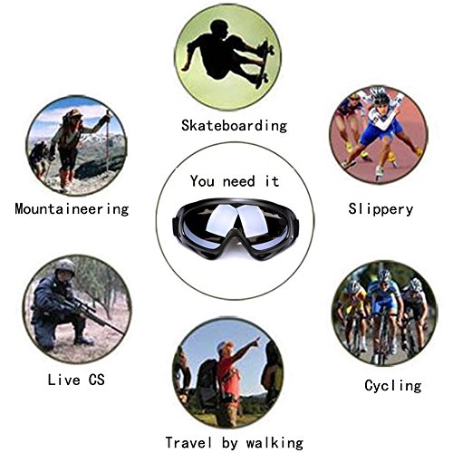 Adjustable Strap to accommodate any helmet. Optically correct clear lens which is durable and shatter-proof. Ventilation slots in the eyewear frame provide optimal air circulation. Suit for cloudy day and have good anti-fog, anti-impact, anti-scratch and 100% anti-UV function.