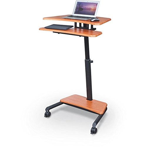 -. Feature : Mobile and easily adjustable from sitting to standing / Height adjustable from 28.5 inches to 45.5 inches / Keyboard is adjustable by 4 inches for easy access / Color: Cherry/ Black / Materials: PVC laminate, MDF, steel, plastic