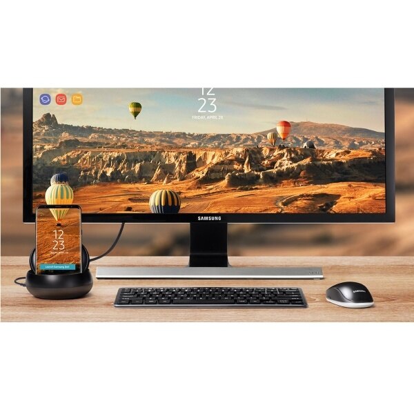 The Samsung DeX Station enables you to turn your Samsung Galaxy S8 / S8+ into a true desktop PC experience. By docking the Galaxy S8 / S8+ into the DeX Station, your phone will launch a special DeX mode on the connected external monitor and applications can be opened in multiple separate windows. Connect a mouse, keyboard, and Ethernet cable for added productivity.