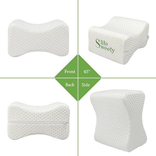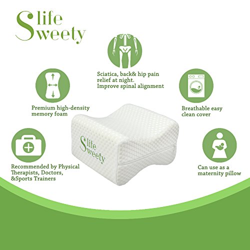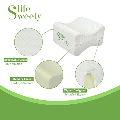 Sweetylife Knee Pillow for Back Pain Sciatica Relief Memory Foam Leg Pillow for Side Sleepers Sleeping With Breathable Zippered Cover