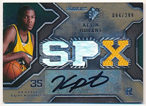 KEVIN DURANT 2007/08 SPX RC ROOKIE AUTOGRAPH SONICS RELIC JERSEY AUTO SP #/299