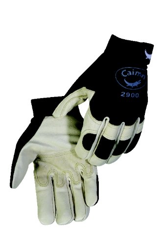 Caiman 2900-6 Extra Large Elastic Cuff with Hook and Loop Closure and Pig Grain Leather Multi Activity Glove, Tan and Black