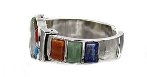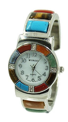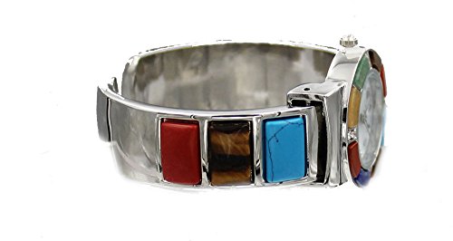 Gem Stone Watch Bangle Cuff Inlay Style with Crystal Accents
