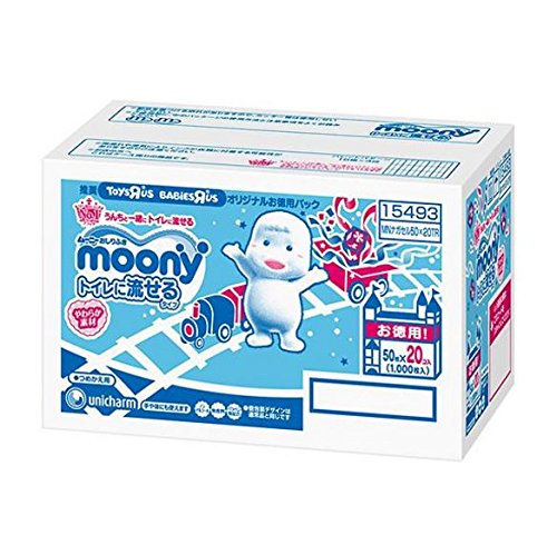 -. Title : ベビーザらス限定 ムーニーおしりふき トイレに流せる柔らか素材 1000枚(詰替用50枚×20個pacs)