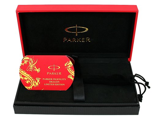 -. Feature : Limited Edition of 8,000 World-Wide (each pen serially numbered) / Uses Parker's 5th Technology - a combination of an engraved metal fountain pen like hood, and a cartridge refill tip / Emblematic Parker arrow clip / Trims are coated in a light gold PVD (a high tech ultra-resistant coating process used in top luxury and technology industries) / Presented in its limited special edition Parker Ingenuity Dragon gift box