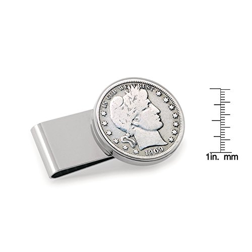 Binding : Apparel Product Description Stylishly simple in design this Silver Tone Half Dollar Coin Money Clip is historical and collectible. Keep your currency secure in the stainless steel two inch money clip featuring a genuine United States Half Dollar. The Silver Barber Half Dollar, struck in .900 Fine Silver was designed by chief engraver of the U.S. Mint Charles E. Barber and was minted from 1892-1915. The obverse design features the head of Liberty. 0