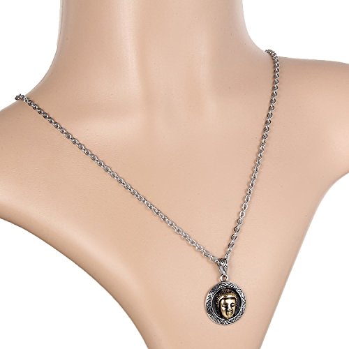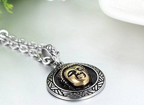-. Feature : Material: Stainless Steel, Hypoallergenic, Color: Gold Silver / Buddha Pendant Religious Necklace Unisex / Pendant Height* Width: 0.98"(2.5cm)*0.83"(2.1cm) / Come with One Free 22 Inch and One Free 20 Inch Chain and a Free Black Velvet Pouch. / Excellent Craftsmanship and Quality,You Deserve to own it