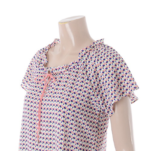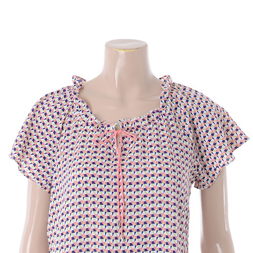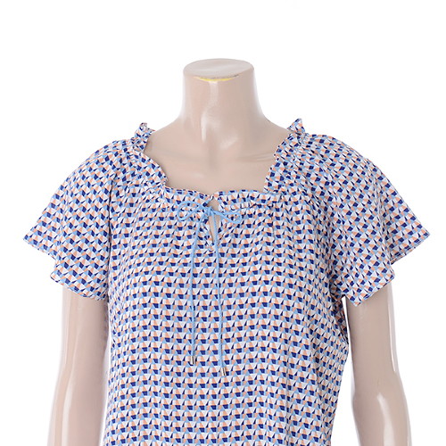 기하학 패턴 바탕에 네크라인 부분 끈과 장식으로 밋밋하지 않는 포인트를 주었습니다.