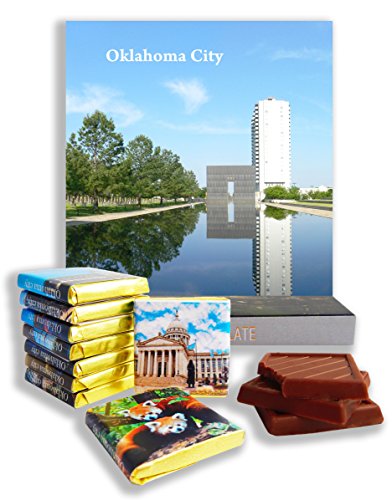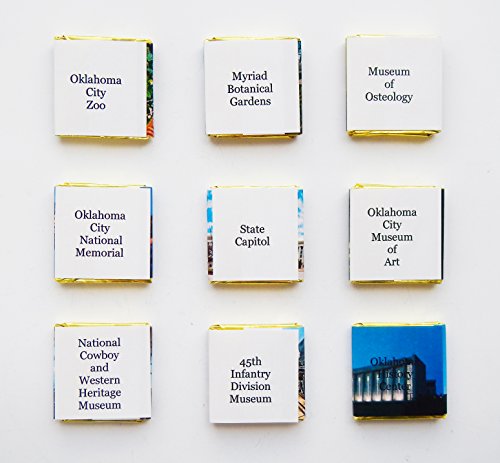 -. Feature : Pieces of chocolate made from high-quality raw / Creative carton box - MAGNET with sliding bottom / Each of the 9 wrappers contains one of OK attractions / 45th Infantry Division Museum, Museum of Osteology, Myriad Botanical Gardens / National Cowboy and Western Heritage Museum, Oklahoma City Museum of Art, Oklahoma City National Memorial, Oklahoma City Zoo, Oklahoma History Center, State Capitol
