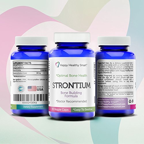 DOCTOR RECOMMENDED - Strontium is doctor recommended for promoting new bone growth and slowing down the breakdown of old bone. Please consult a doctor before starting a new regiment. For optimal bone growth, keep active and be Happy Healthy Smart.