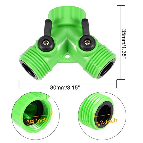 2 Way Y Connector-Each splitter has 2 way connectors and 2 valves. It easily converts a single garden tap into 2 outlets.Good helper for your garden life
