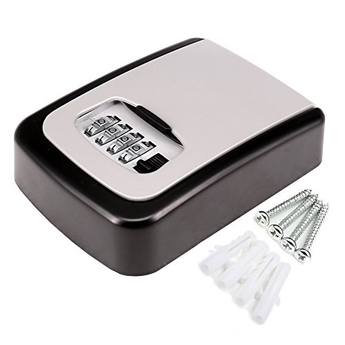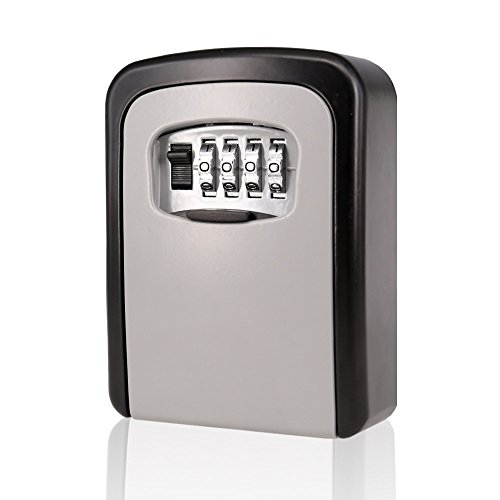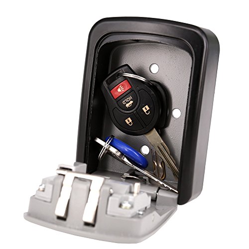 Key Lock Box, Wall Mount Key Storage Lock Box, 4-Digit Resettable Combination Lock Box, Outdoor Weatherproof Key Box for Indoors/ Outdoors, Holds up to 5 Keys