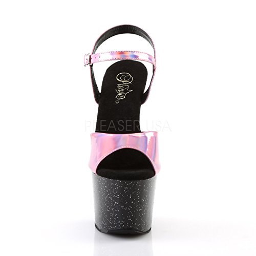 Product DescriptionSKY-309HG/PNHG/B features 7" (178mm) Heel, 2 3/4" (70mm) Platform Ankle Strap Sandal Featuring Holographic Upper and Mini Iridescent Glitters on the Entire Platform Bottom0