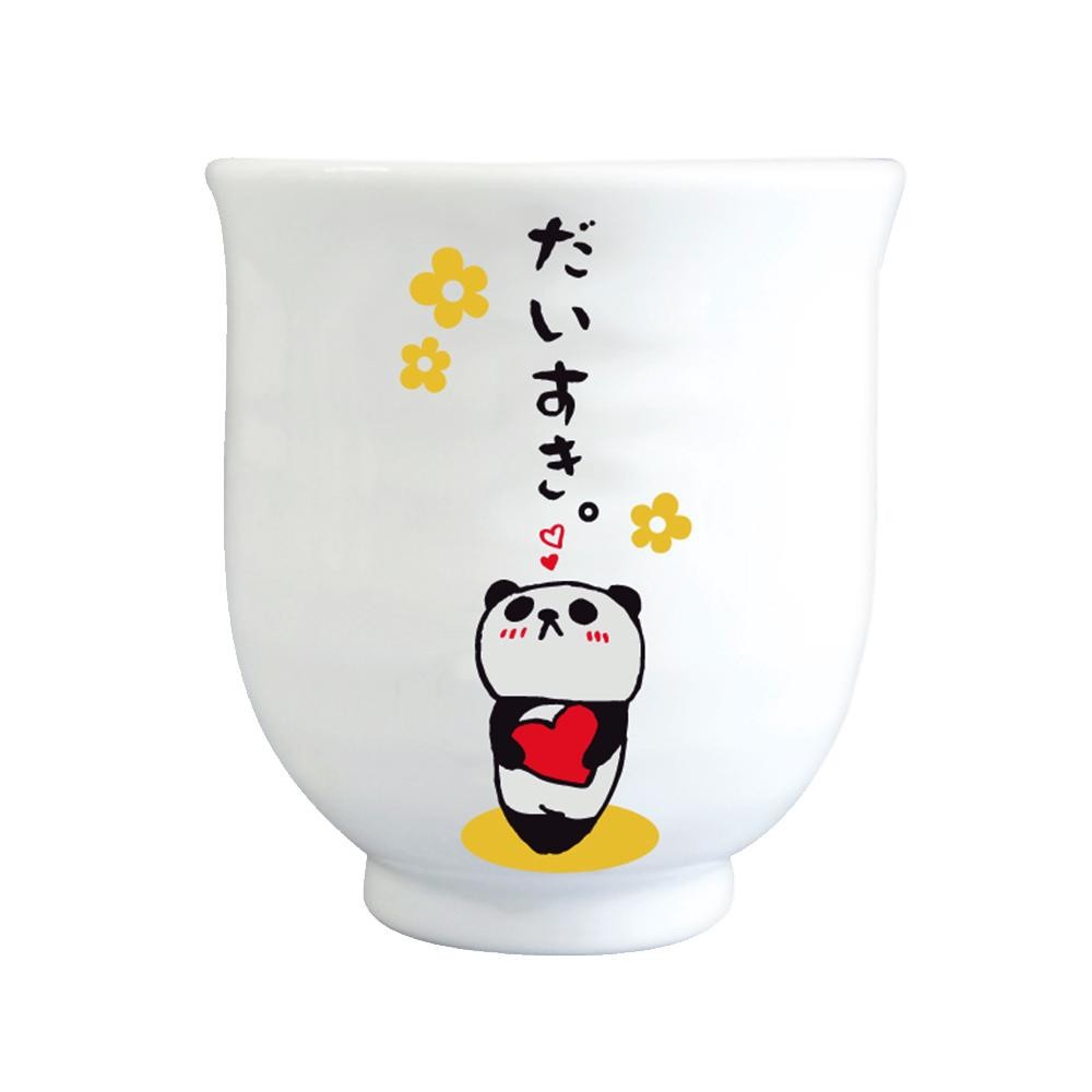 fk094igrjs感謝の気持ちや思いを伝える「ひとこと」がプリントされた湯呑みですプレゼントにぴったりです サイズ H80×Φ75mm 個装サイズ:10×10×9cm 重量 個装重量:250g 素材・材質 陶器 製造国 日本 パンダの絵柄がかわいい湯呑みです ※使用方法により、絵柄が薄くなったり剥げたりする場合がございますあらかじめご了承ください 感謝の気持ちや思いを伝える「ひとこと」がプリントされた湯呑みですプレゼントにぴったりです