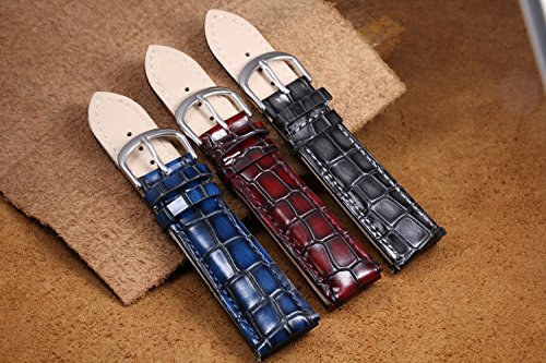-. Feature : Band width of the lug end: 22mm; buckle width: 20mm; length: 4.49inch/2.91inch; Thickness: approx. 4.7mm/3.5mm. Please choose the band size as the same lug width of your watch case. You can also check the last photo on this page for size guide. It's a standard length band and it fits most of the wrists. You can compare the length with your original bands to see if it fits your wrist or not. / This is a high-end leather band exclusively made for your expensive luxury watches, such as Tissot, , , Invicta, , Omega, Hamilton, Michele, Mido, Tudor,Rado,Movado, Marvin, Oris, Balco, Certina, Citizen, Zenith, Titoni, Swiss Military, Jaeger, Chopard, Bulova, Timex, , Stuhrling, Aviator, Orient, etc.. and other top brands with the same sized straight lug ends. / The upper side is made of genuine Italian leather, crafted from the first layer of the cow hide. The underside lining is made of PU. A pattern is stamped onto the hide, simulating the texture of a crocodile skin, and it's painted several times, creating a finish that is semi-matte. The stamped crocodile-grain calfskin surface is in medium gloss finish to match your old watchband or apparel. The watch band is moderately padded and soft for comfort. / The running loop is reinforced with hand stitching to ensure the long durability. The pin buckle is made of 316L solid stainless steel. We have 3 colors of pin buckles for your choice: silver, gold and rose gold. If you want a different color for the pin buckle, please feel free to send us a message. / The strap is nicely packed with free set of matching sP.R.Ing bars/ pins included. You could easily change any straps by your own. We assure you the best quality by offering one year warranty.