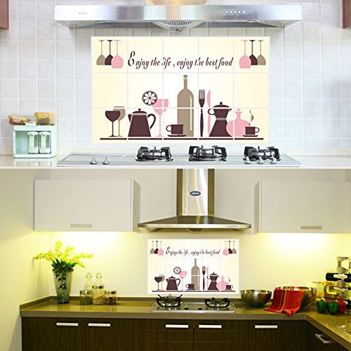 -. Title : Whitelotous Kitchen Removable Wall Stickers Home Decorative Happy Kitchen Oil Proof Sticker Wall Murals 75 x 45 cm