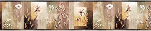 -. Title : Brewster MEA24624B Bonnard Olive Colorblock Floral Border Wallpaper,