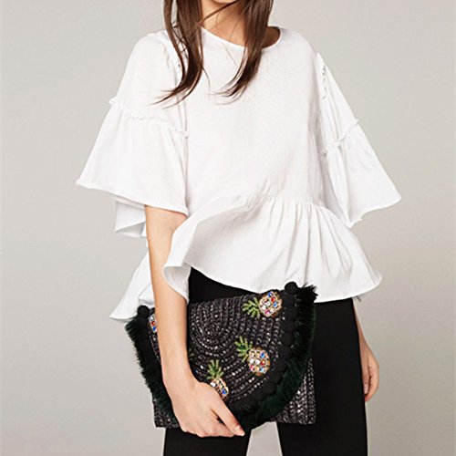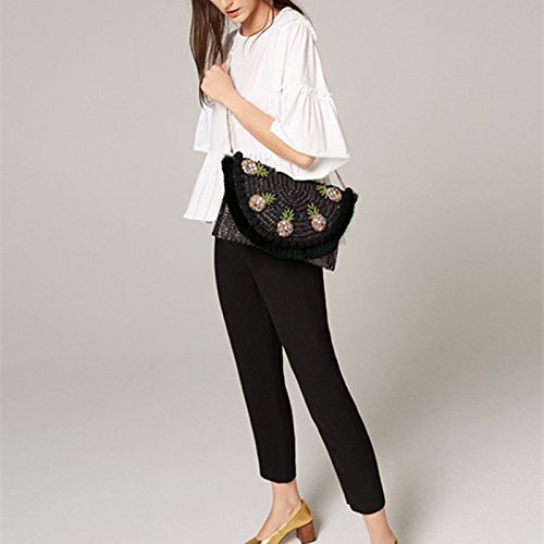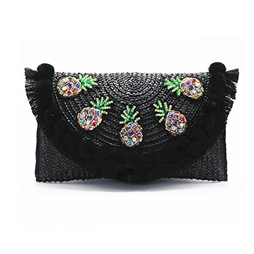 Women's Beach Bag Straw Clutch Handbag Messenger Bag Envelope Bag Pom Pom Tassel Crossbody Shoulder Bag