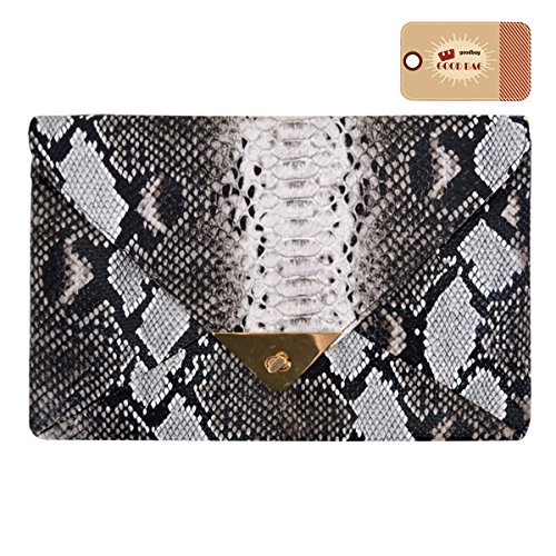 Goodbag Boutique Lady Retro Fashion PU Handbag Faux Snakeskin Envelop Clutch Chain Shoulder Crossbody Bag