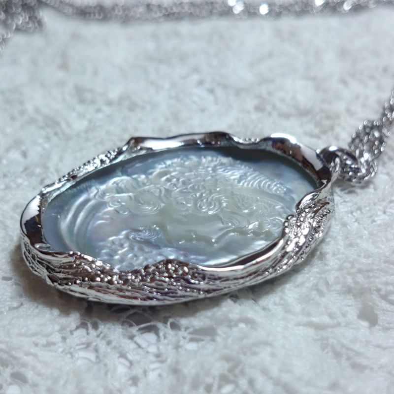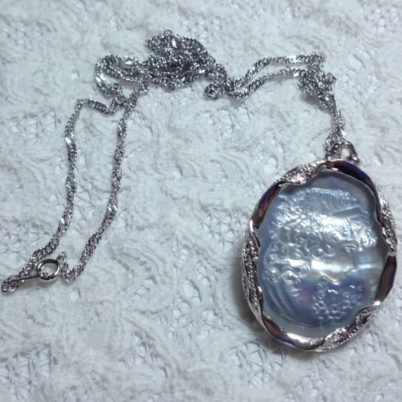 ネックレス ペンダント 白蝶貝 シロチョウガイ カメオ アンティークスタイル ビンテージスタイル