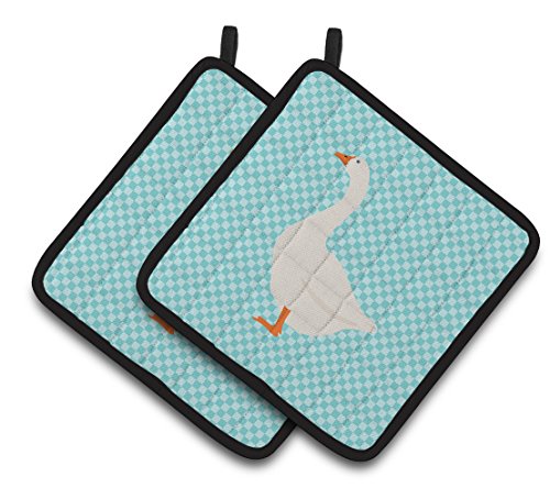 Caroline's Treasures BB8066PTHD Embden Goose Blue Check Decorated Pot Holder, 7.5" x 7.5", Multicolor