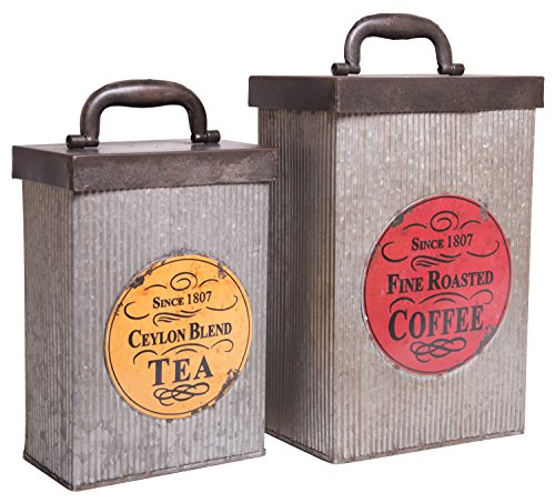 Country Rustic Metal Storage Canisters, Coffee and Tea Containers, Set of 2, 11-inch