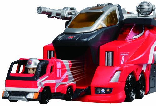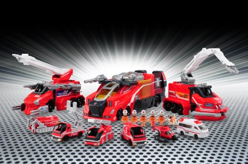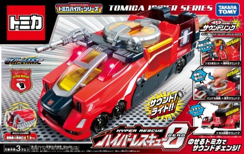 サウンドリンク対応トミカをレスキュー0(ゼロ)に搭載すると、トミカを認識し、異なる機体名、司令サウンド、出動時サウンドが鳴ります。※通常トミカを使う場合、サウンドは鳴りませんが、遊ぶことはできます。レスキュー0(ゼロ)は、パワードユニットビークル(別売)によって様々なフォームにチェンジすることが可能です。パワードレスキュー車と合体してレスキュー01に変化します。既存の大型車両(一部を除く)と合体可能です。
