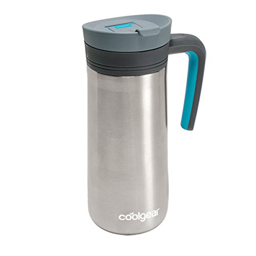 coolgear KAFE 16 oz Java Stainless Steel Coffee Mug with Handle-Blue, Blue