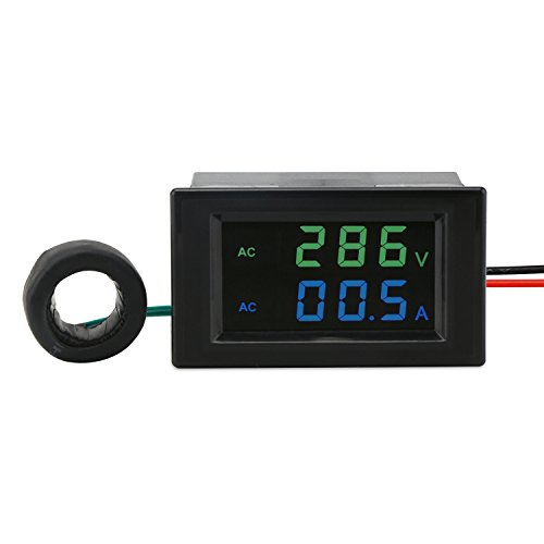 DROK LCD Display Digital Multimeter Voltmeter Ammeter AC 80-300V Voltage Current Meter Gauge 100A Volt Ampere Tester with AC Current Sensor Transformer,Two-wires Digital Volts Amp Monitor Panel