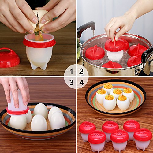 EASY TO USE & CLEAN: Crack open the eggs, pour into a cooking cup, boil and serve. The egg cooker let you easily make soft, medium, hard boiled eggs, scrambled eggs, mini omelets, salads and more. These are dishwasher Safe and easy to clean.