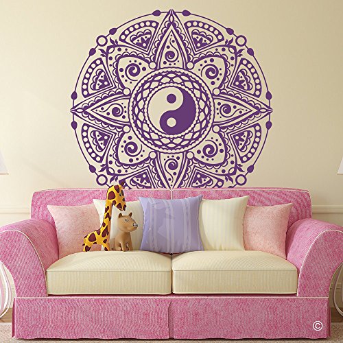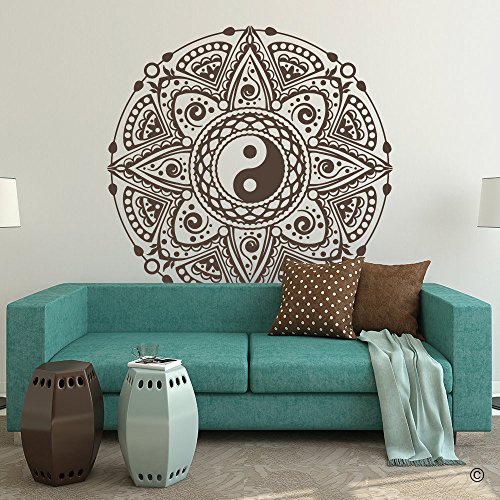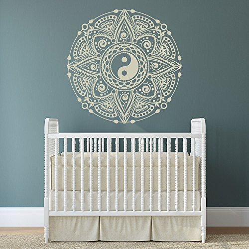 Mandala Wall Decal Yin Yang Wall Sticker Medallion Vinyl Wall Decal for Nursery Living Room (Black,23X23 Inch)