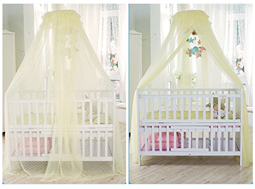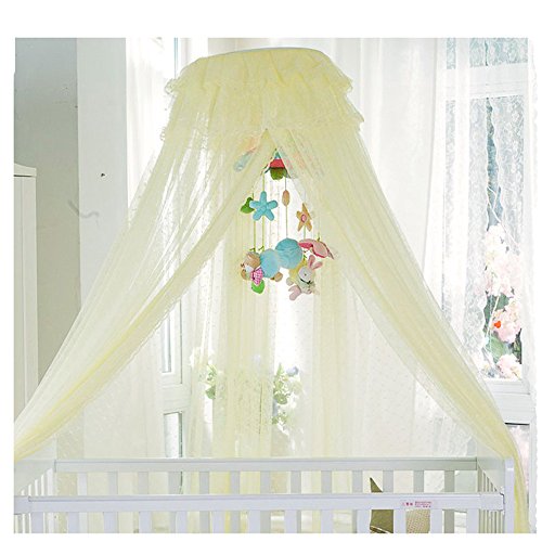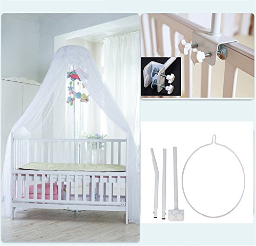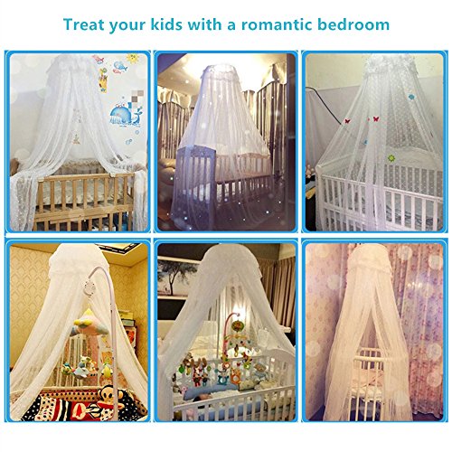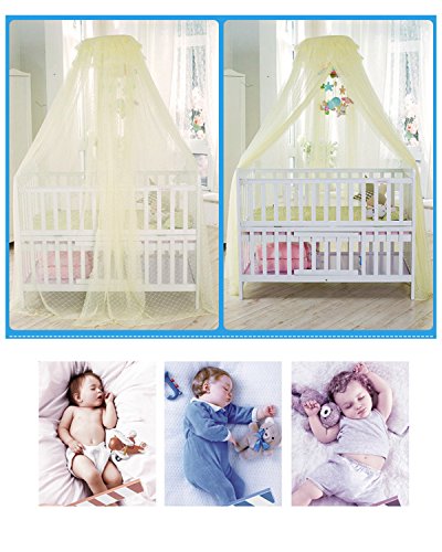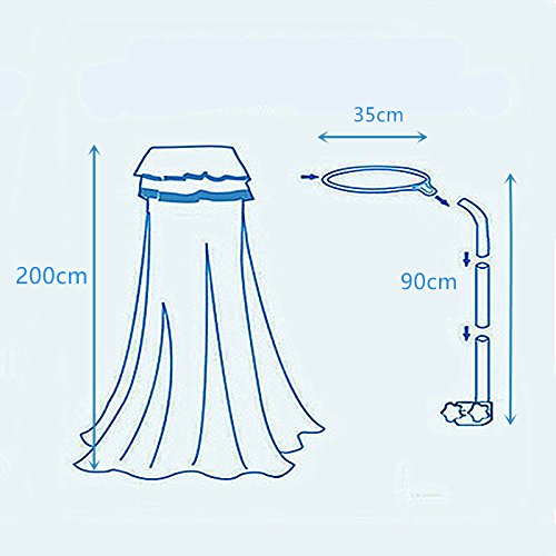 This mosquito net fits playpens, bassinets, cribs, smaller beds etc. It would add elegance to the room and at the same time protect your baby from mosquitoes and bugs. Perfect choice for your baby's room! So cute! Netting is made of high quality see-through mesh cloth with 25 holes per square centimeter Easier match for the bed ( L*W): 150 * 80 cm / 59 * 31.5 inch Net Height(approx.): 79inch / 200cm, Bottom Leagth: 600cm. Very easy to install, includes a suspension system which hangs from from a mobile stand