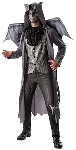 -. Feature : Gargoyle costume includes gray coat, printed vest, ruffled black jabot, realistic mask, and wings / Hooded coat features attached ears and pointed tail / Standard fits a 42 to 44-inch jacket size and 34 to 36-inch waist / Great for Halloween, costume parties, and other fun events / Rubie's offers holiday and novelty costumes and accessories in sizes and styles for the entire family