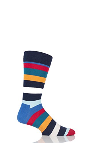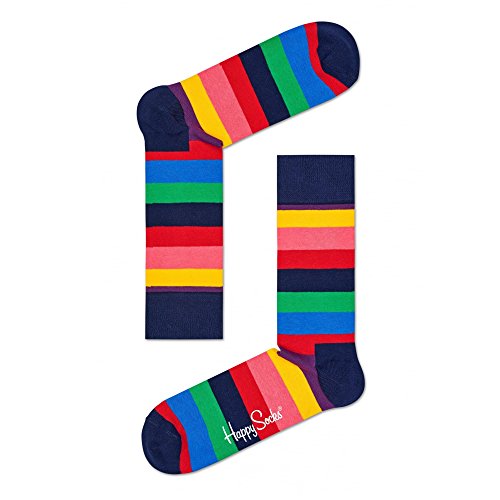 Product Description Wide stripes are the most direct way to let your socks make a bold colour statement, and no better than these Happy Socks Stripe Combed Cotton Socks with their vibrant colour combinations and contrast cuff, toes and heels.Each multicoloured pair of these 0