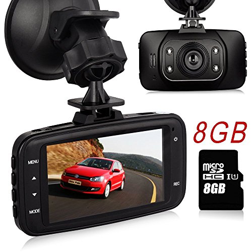 Btopllc 8G Card on-dash Video 2.7" Full HD 1080P Car DVR / Video Camcorder/Driving Data Recorder/Black HDMI Camcorder Vehicle Camera with Night Vision, G-Sensor and Motion Detection-Black