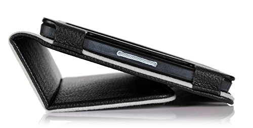 Premium composition leather exterior and soft microfiber interior offer great protection against daily use; Front lid able to transform into a horizontal stand by flip back
