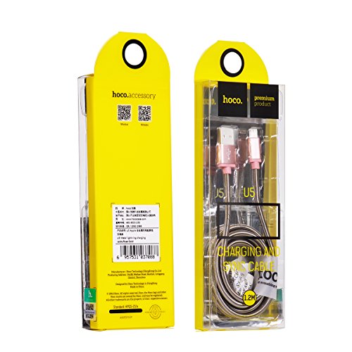 Lightning USB Cable HOCO U5 1.2m Full Metal Data Cable Heavy Duty & Fast Charging Cable for Apple/iphone/OS Rose Golden