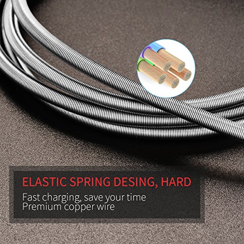 ✔ Durable upgrade, new metal spring cable, high-quality all-pass core, fast charging; More durable life of up to 10004 times connections of plug and pull, longer than the old section.