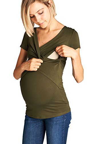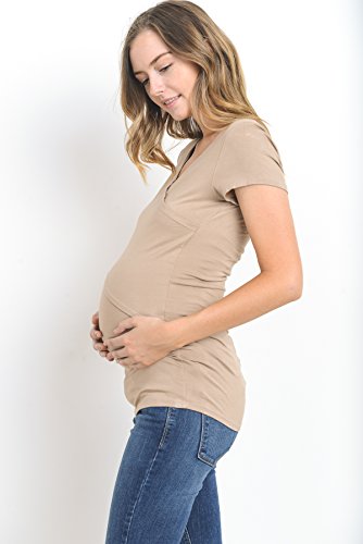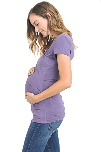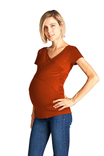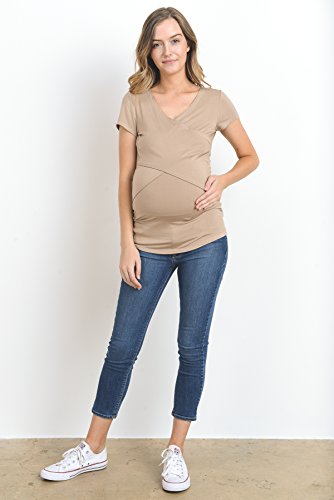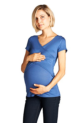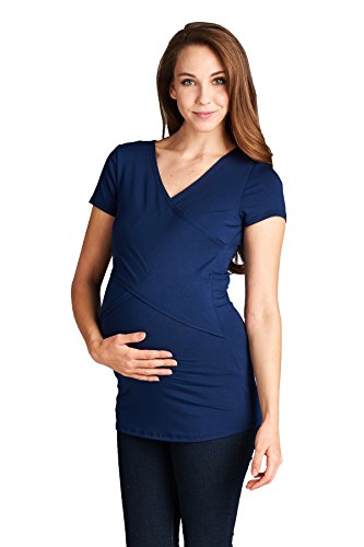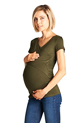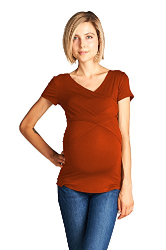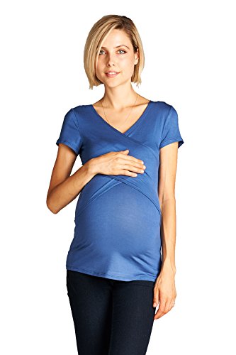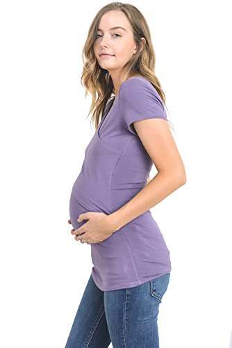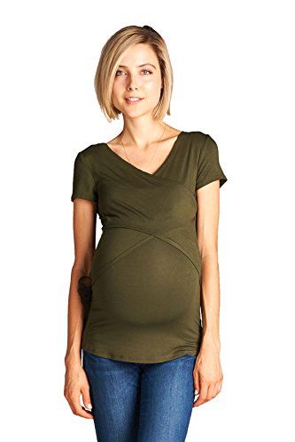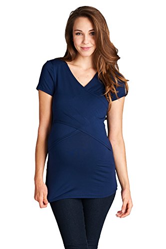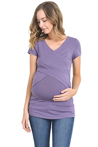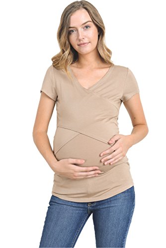 LaClef Women's Crossover V Neck Short Sleeve Nursing Breastfeeding Tops
